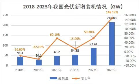 裝機(jī)量再度刷新!光伏市場(chǎng)持續(xù)火熱! 1月26日,國家能源局發(fā)布2023年全國電力工業(yè)統(tǒng)計(jì)數(shù)據(jù)。2023年1~12月光伏新增裝機(jī)216.88GW,同比增長148.12%。 去年,對(duì)于光伏行業(yè)來講是爆發(fā)式增
